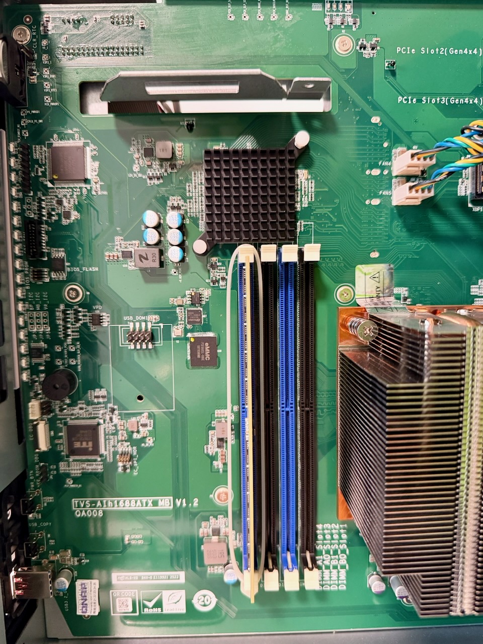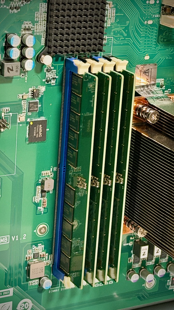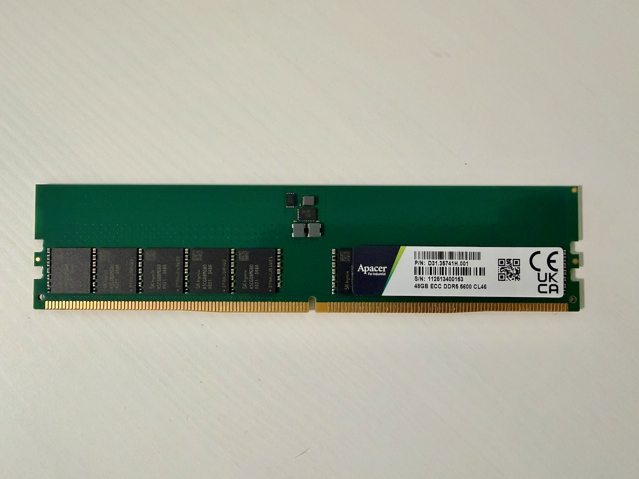 Základní konfigurace je solidní, ale u zařízení této třídy dává smysl jít ještě dál. Původní paměťový modul (Apacer 48GB) je proto nahrazen čtyřmi moduly Kingston DDR5 ECC o kapacitě 48GB každý (Kingston DDR5 5600 MHz CL46, PN: KSM56E46BD8KM-48HM). Celkově se tak dosteme na 192GB operační paměti, což je zároveň maximum podporované touto platformou.