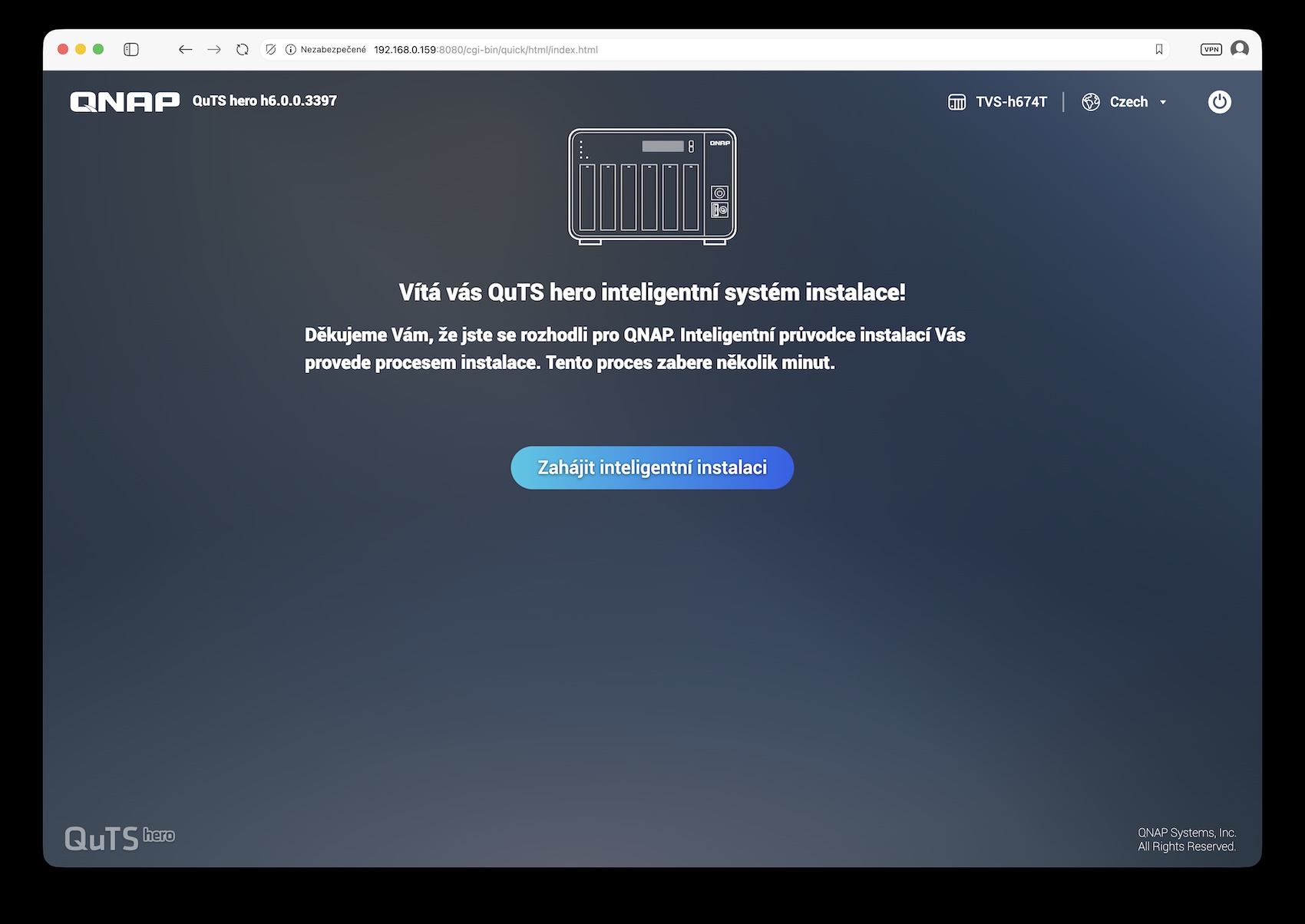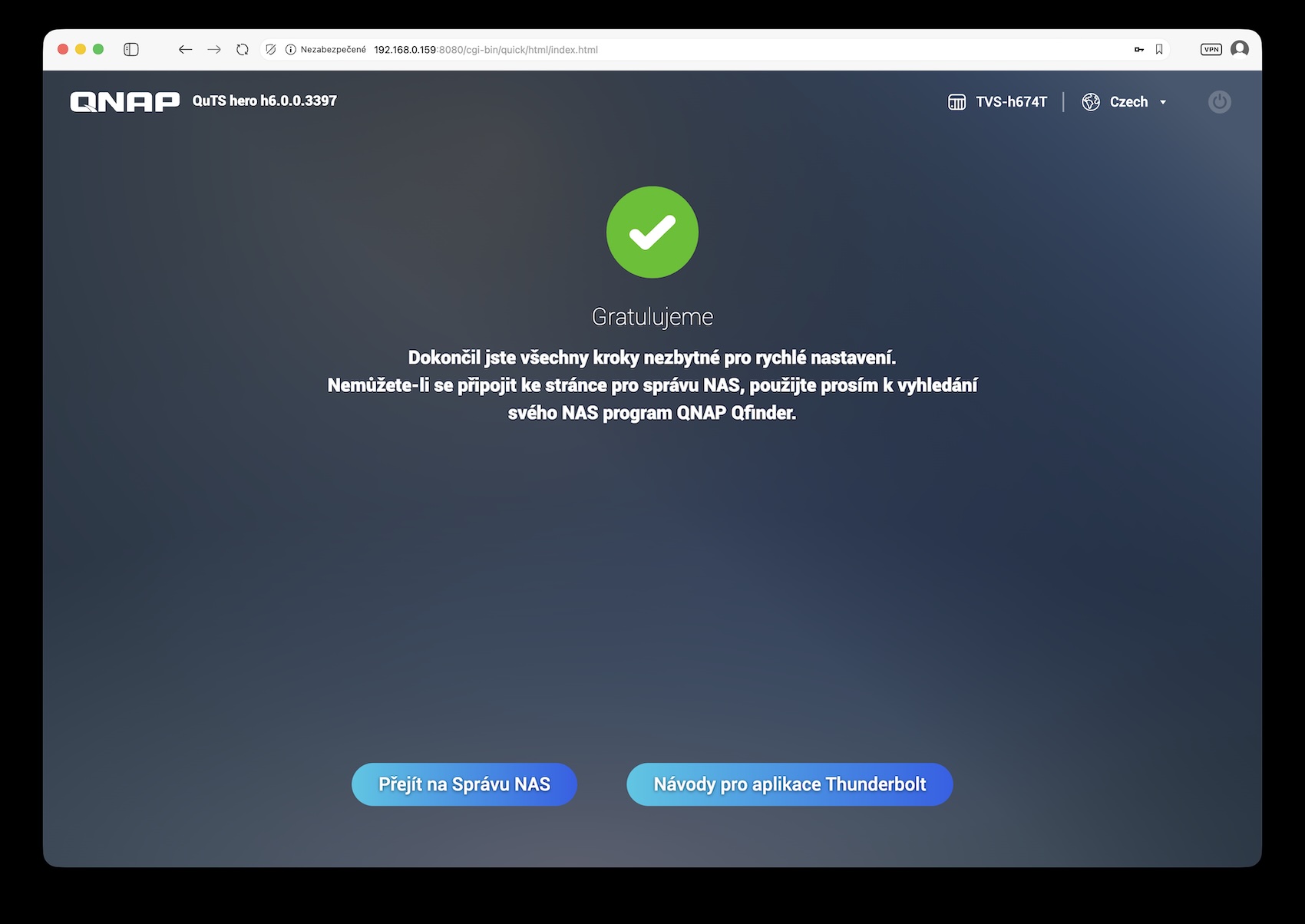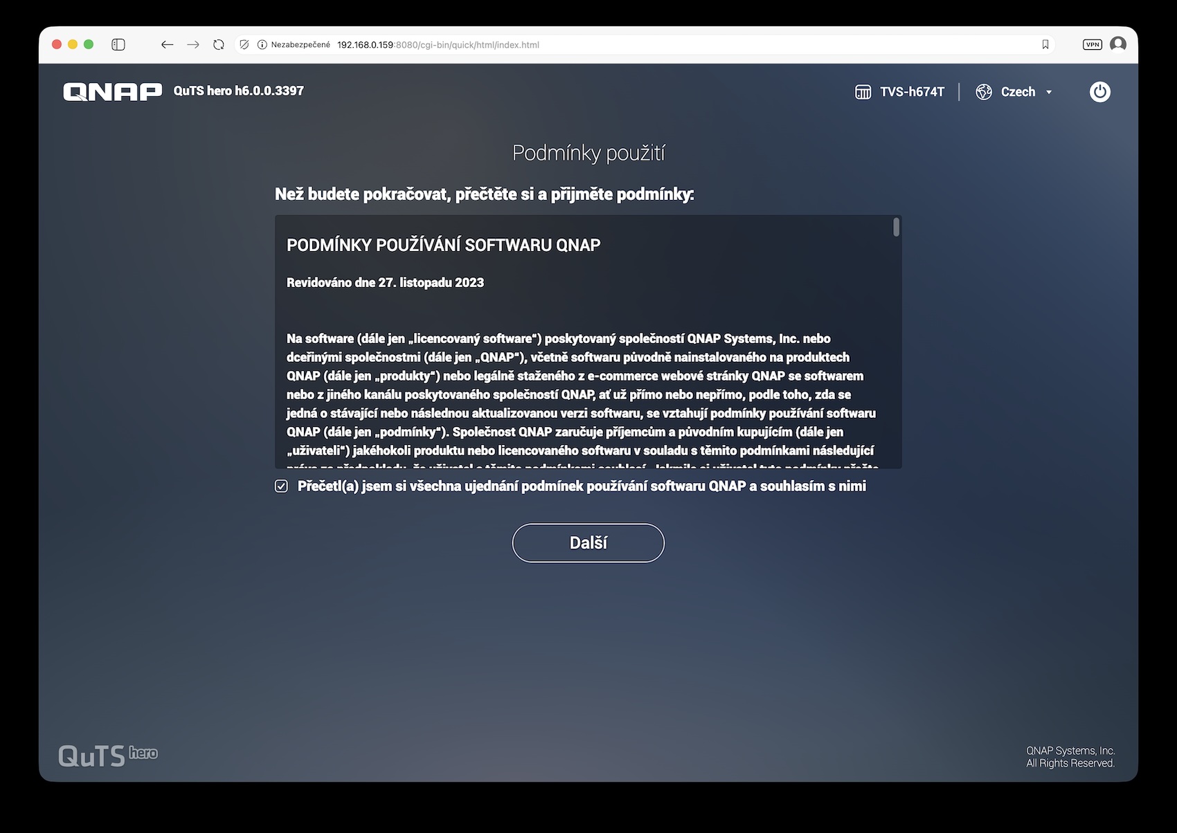 Protože na nainstalovaných SSD discích a modulech již existují data z jiné QNAP NAS, ukážu nyní několik screenshotů z instalace QuTS hero 6 na jiném QNAP NAS modelu a opět jde o velmi rychlý a jednoduchý proces nastavení nejdůležitějších nastavení. Opět doporučuji důraz na aplikaci Qfinder, která na začátku pomůže s vyhledáním NAS v síti a nabízí různé funkce správy NAS (a dalších QNAP zařízení typu switch nebo router).