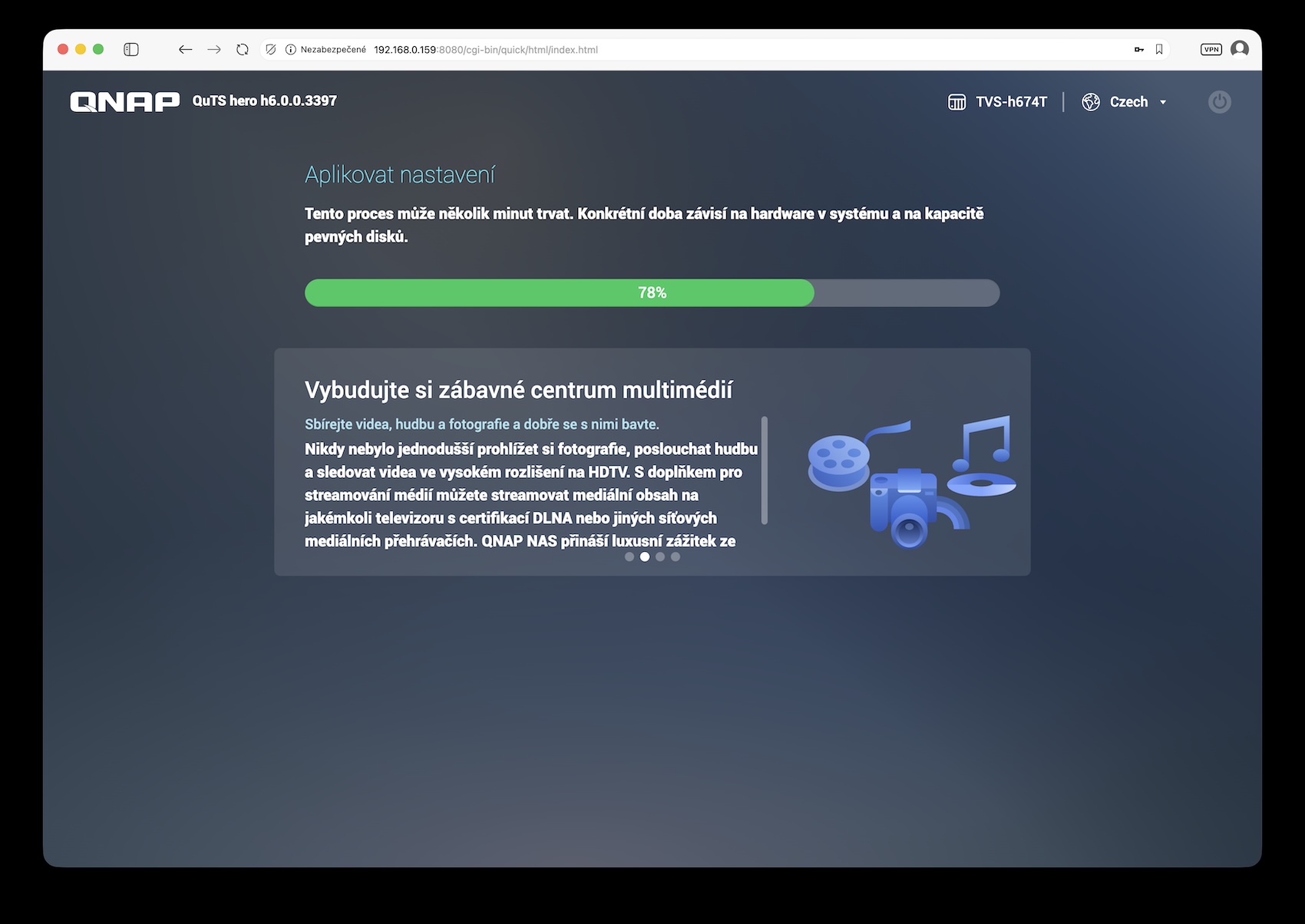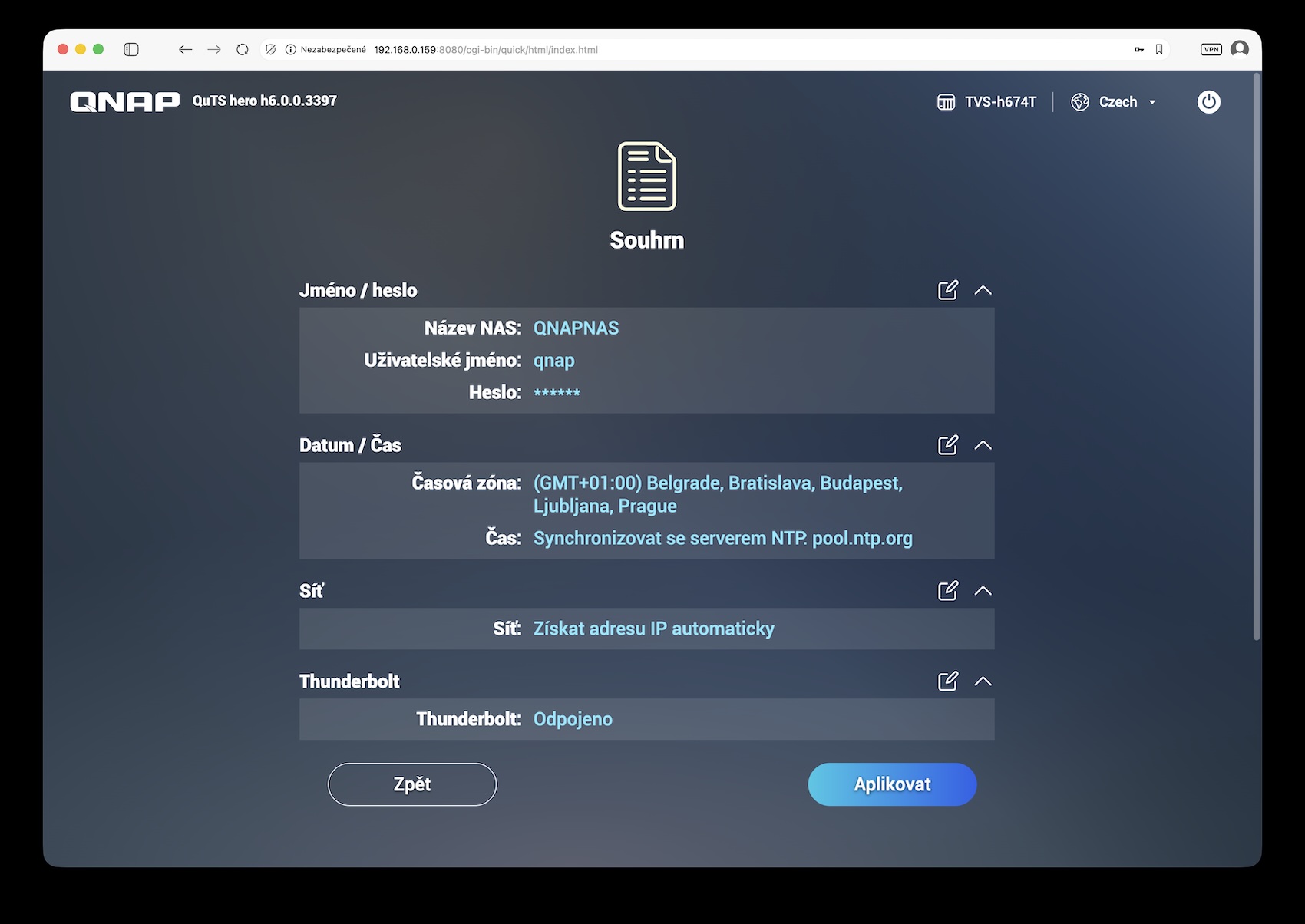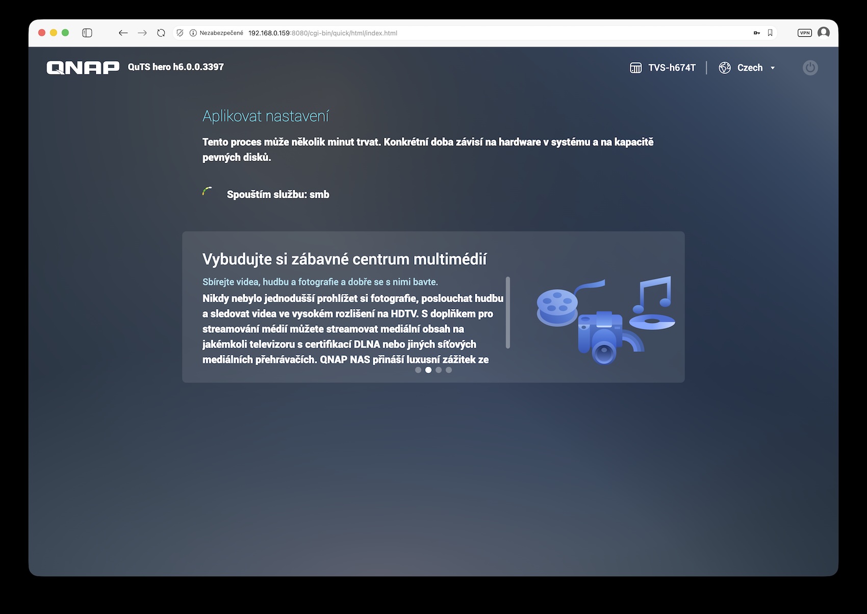 Protože na nainstalovaných SSD discích a modulech již existují data z jiné QNAP NAS, ukážu nyní několik screenshotů z instalace QuTS hero 6 na jiném QNAP NAS modelu a opět jde o velmi rychlý a jednoduchý proces nastavení nejdůležitějších nastavení. Opět doporučuji důraz na aplikaci Qfinder, která na začátku pomůže s vyhledáním NAS v síti a nabízí různé funkce správy NAS (a dalších QNAP zařízení typu switch nebo router).