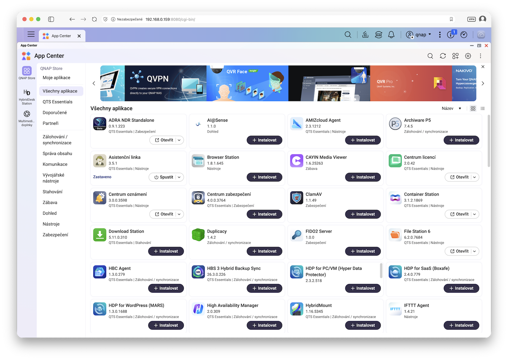 Velkou výhodou QNAP řešení je App Center, které nabízí stovky aplikací pro rozšíření funkcí NASu. Od nástrojů pro správu souborů, zálohování a synchronizaci dat, přes multimediální aplikace, až po kontejnery, databáze nebo vývojářské nástroje. Uživatel si tak může NAS přizpůsobit přesně podle svých potřeb - ať už jde o kreativní práci, firemní infrastrukturu nebo experimentování s AI a virtualizací.