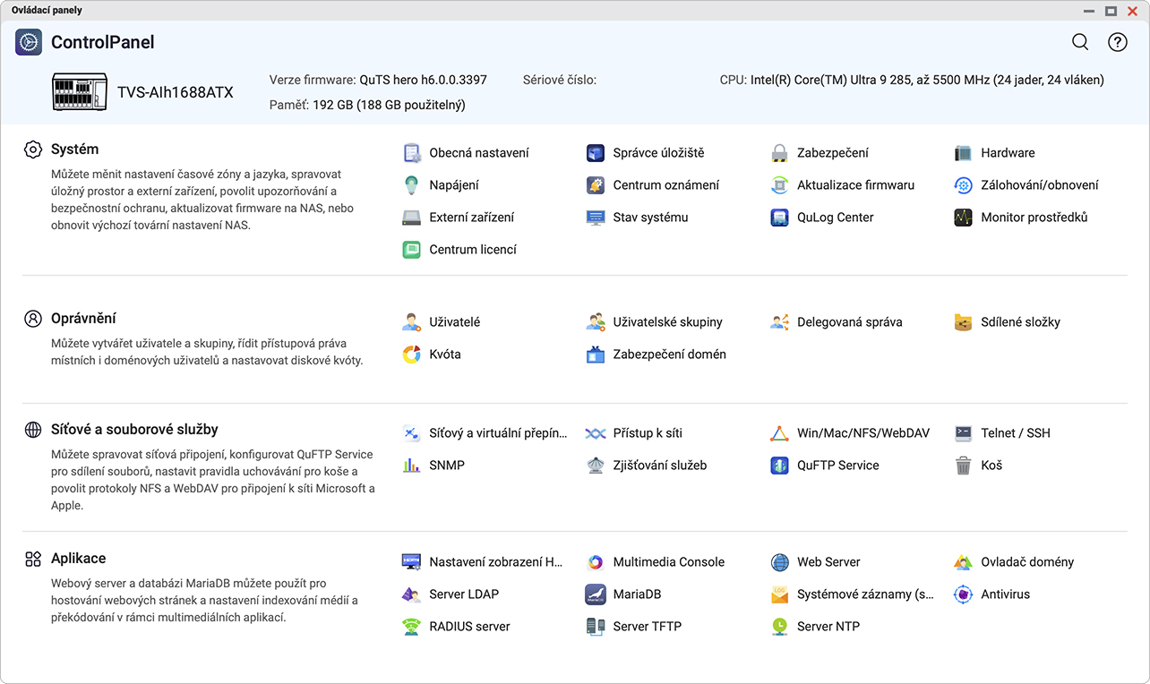 Výkonný hardware by sám o sobě nestačil bez odpovídající softwarové platformy. TVS-AIh1688ATX je testován s operačním systémem QuTS hero 6, který je postavený na souborovém systému ZFS a patří k tomu nejlepšímu, co dnes lze v oblasti NAS řešení nasadit.