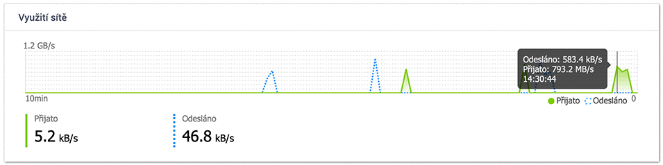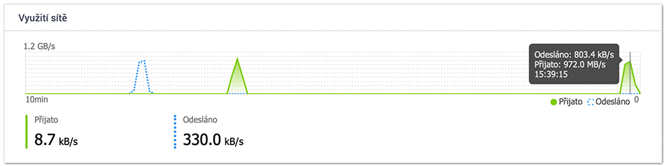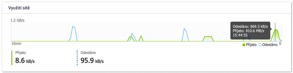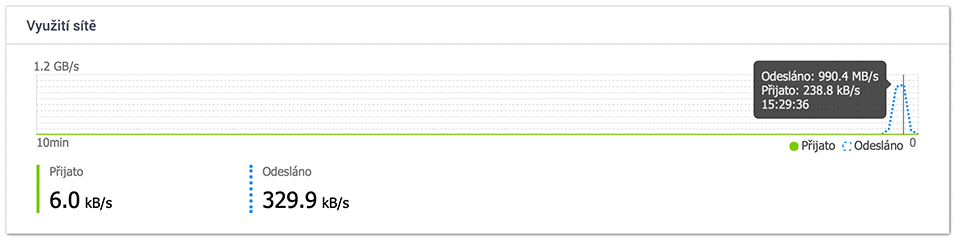 Zápis do TS-h973AX (z jiné NAS, SSD pole RAID5) -> 1 GB/s