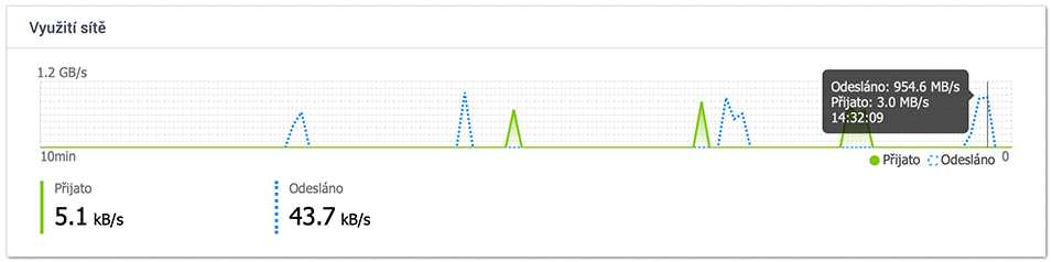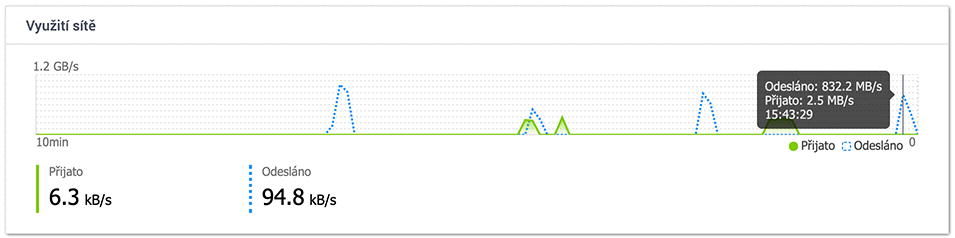 Čtení z TS-h973AX (do jiné NAS, HDD SATA pole RAID5) -> 1 GB/s