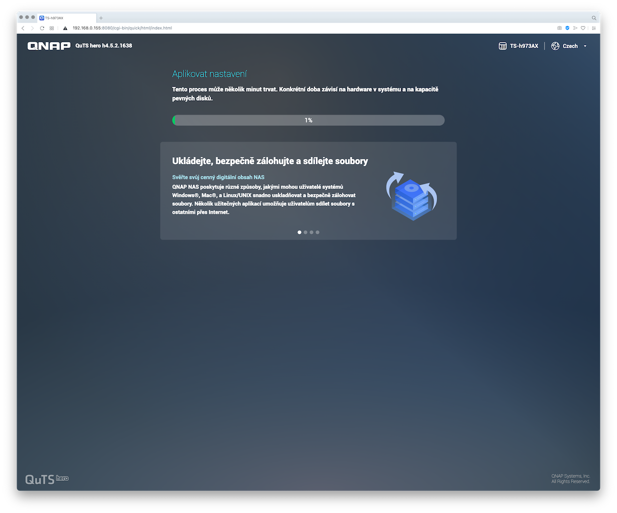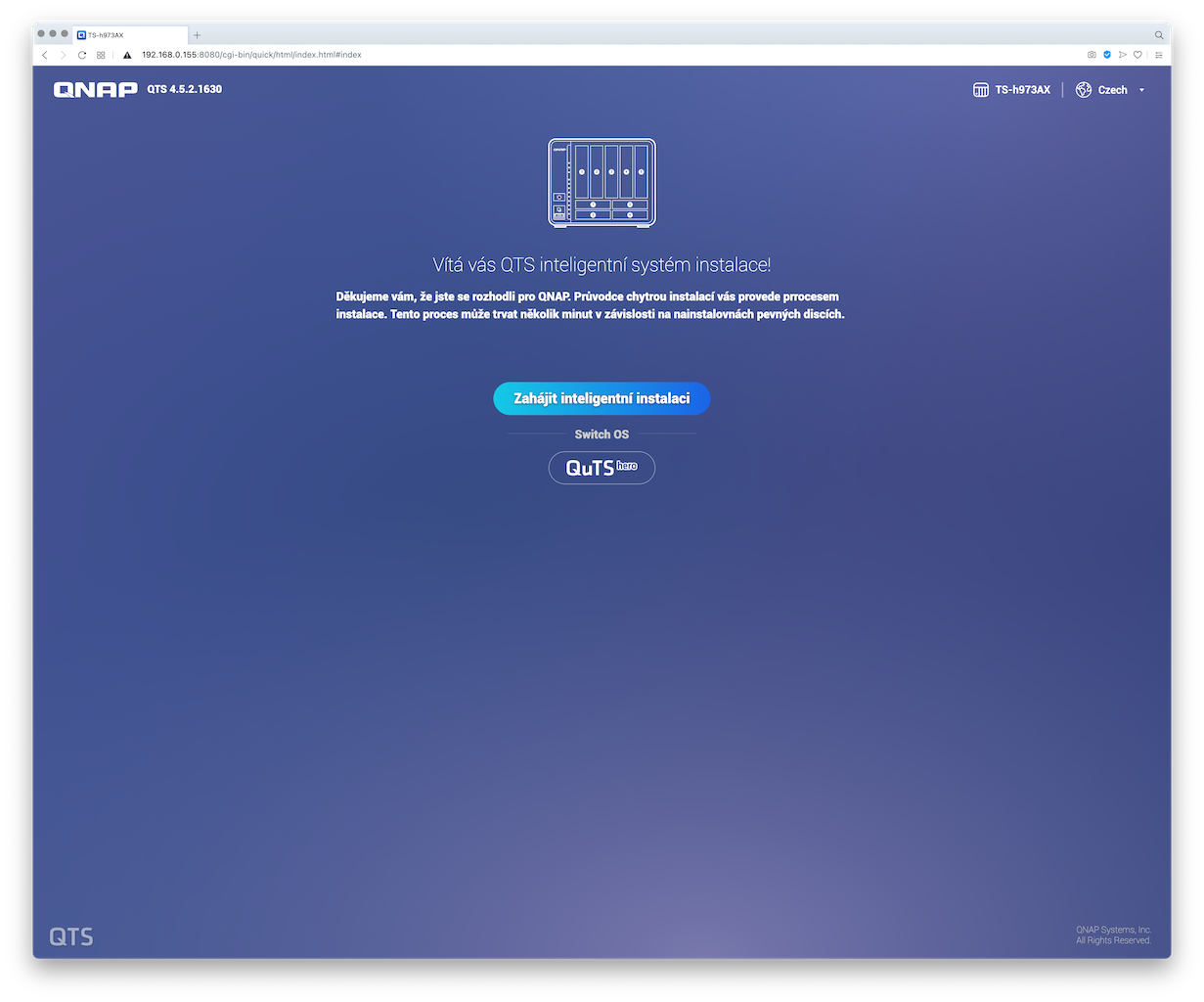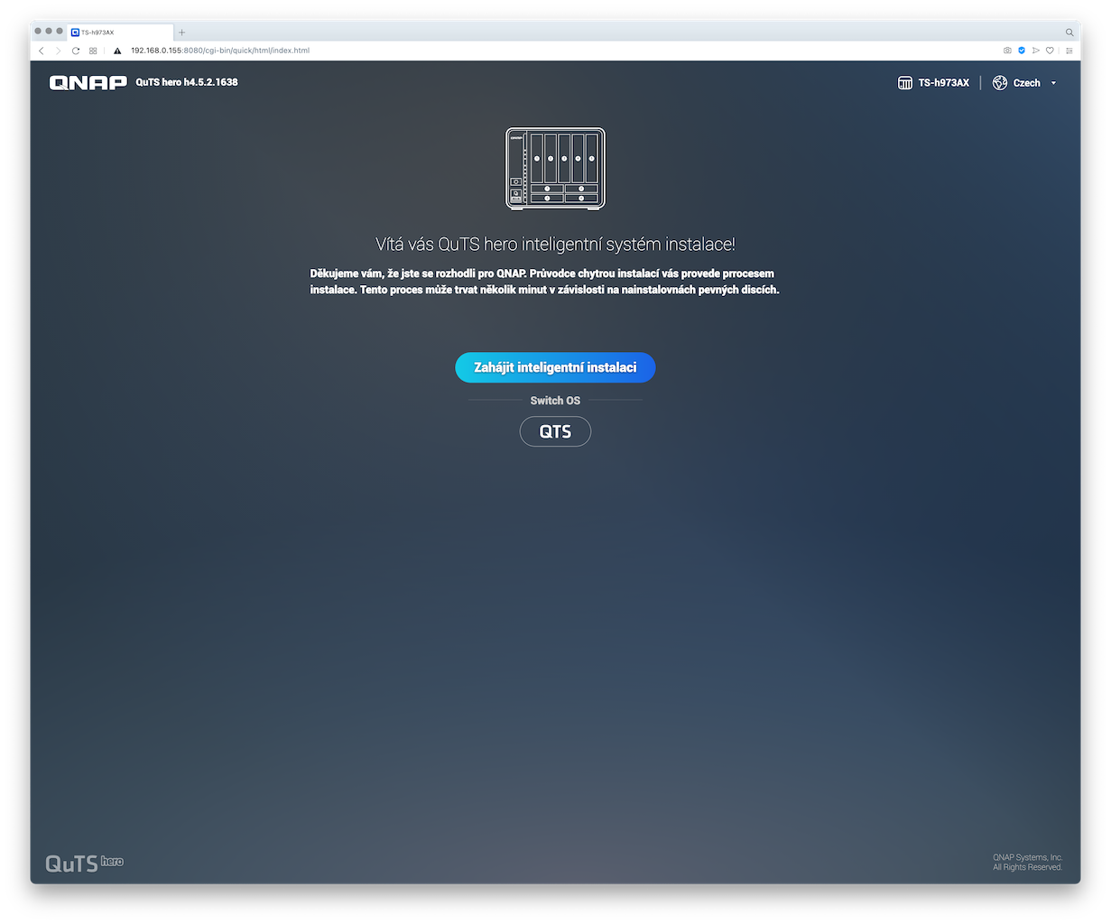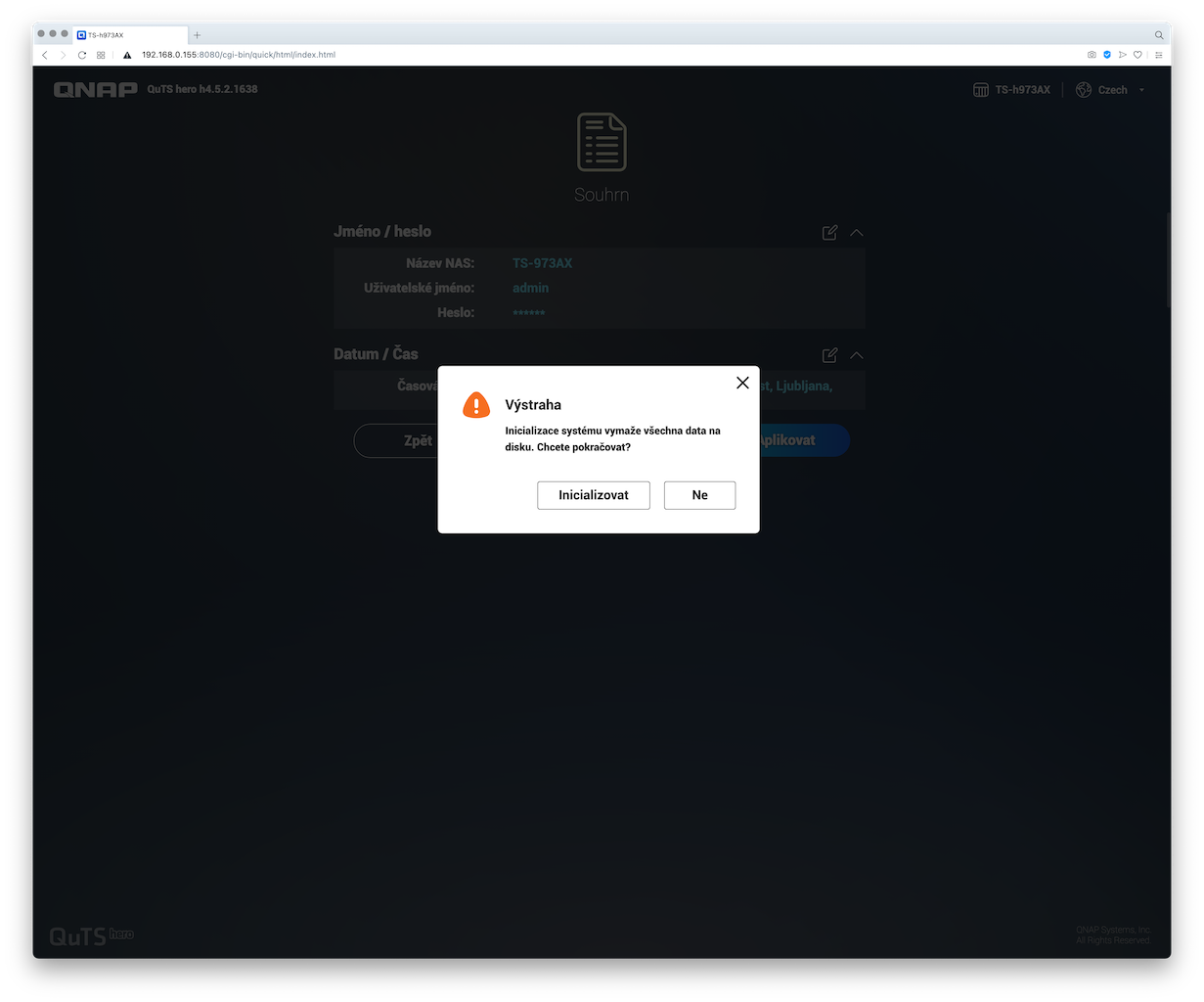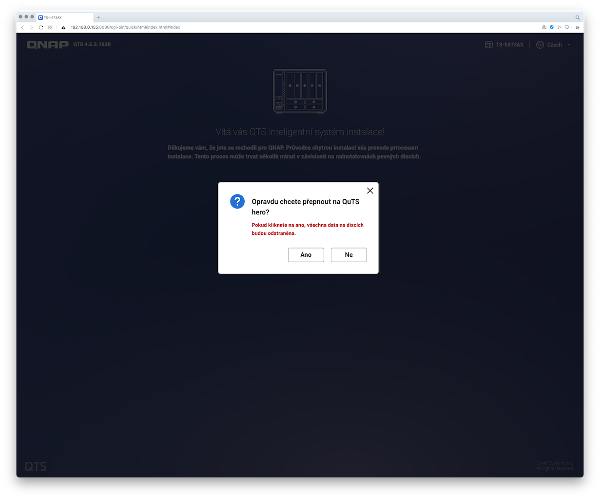 A pro zajímavost sem přikládám screenshoty z postupu instalace systému QuTS hero na NAS TS-h973AX: