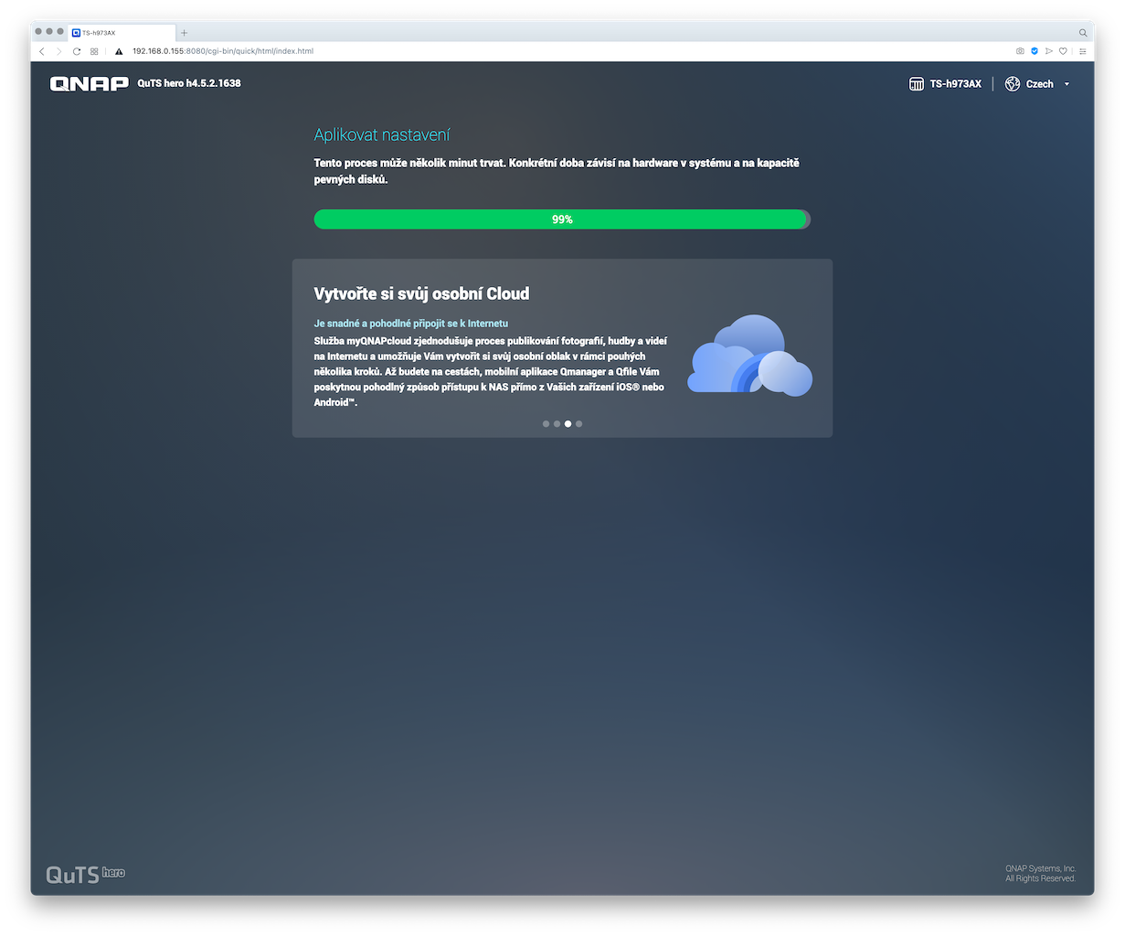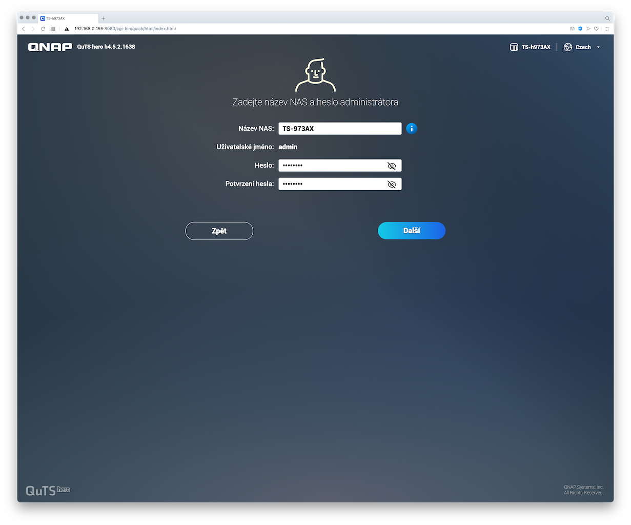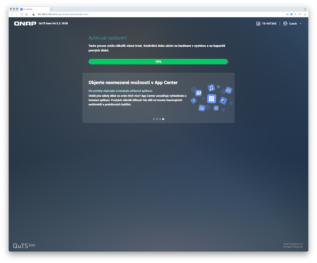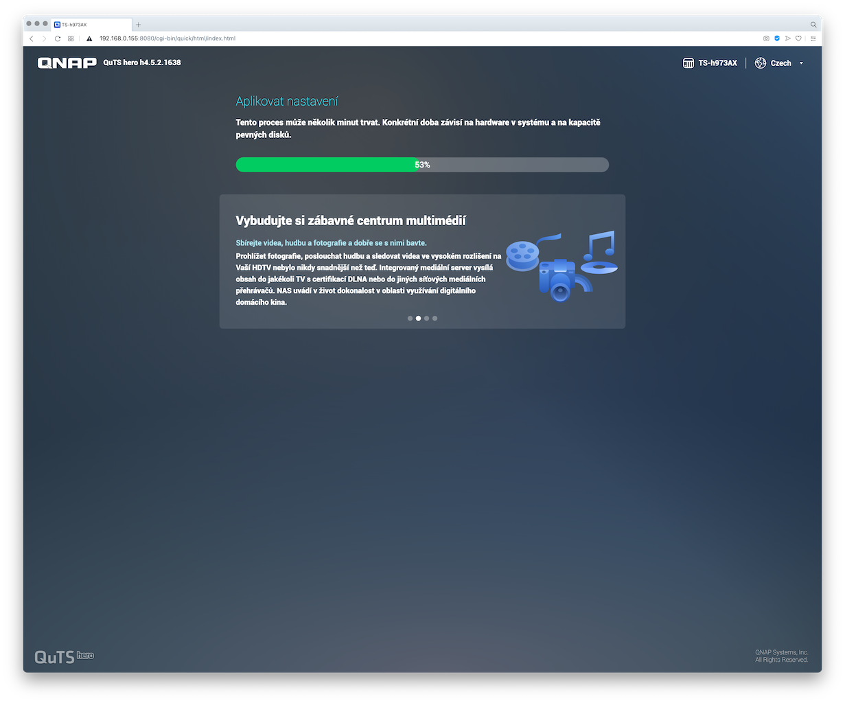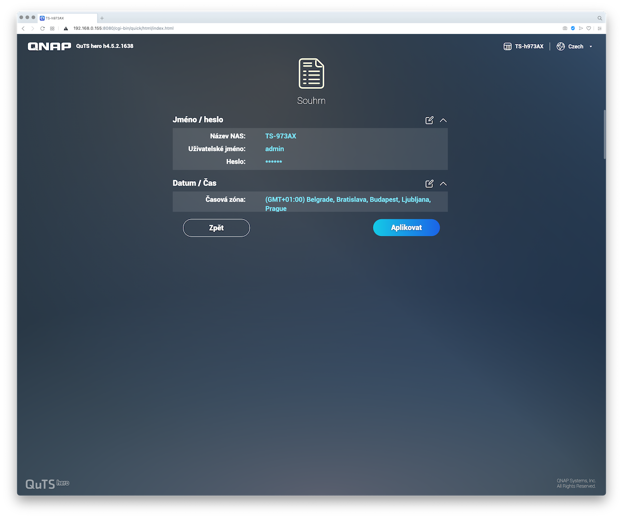 A pro zajímavost sem přikládám screenshoty z postupu instalace systému QuTS hero na NAS TS-h973AX: